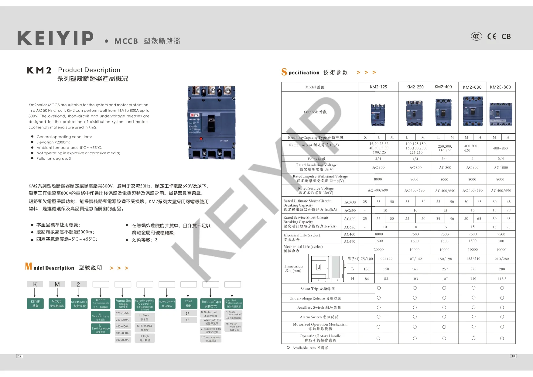 MCCB塑殼斷路器 KM2E-125L/125M